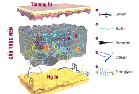 Cấu trúc nền là kết cấu nằm ở lớp bì của da, bao gồm các cấu trúc protein dạng sợi (Collagen, Elastin, Laminin, Fibronectin) và Proteoglycan.