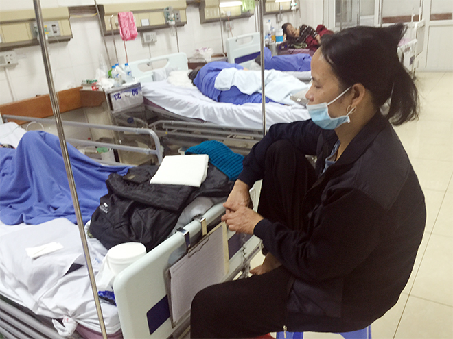 | Chị Tình trông nom bệnh nhân ở phòng cấp cứu Bệnh viện 354. |