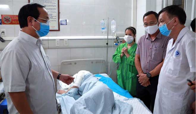 Tại Bệnh viện Xanh – Pôn sau khi nghe các bác sĩ Khoa Bỏng báo cáo về tình trạng nạn nhân Đào Thị Nga (SN 1993, ở phường Bồ Đề, quận Long Biên, Hà Nội) nhập viện trong tình trạng đa chấn thương, bị bỏng phần đầu do tiếp xúc với hoá chất là dầu xe ở nền nhiệt cao, Phó Chủ tịch Nguyễn Thế Hùng đã yêu cầu các bác sĩ tập trung mọi trang thiết bị kỹ thuật nhanh chóng cứu chữa nạn nhân qua cơn nguy kịch.