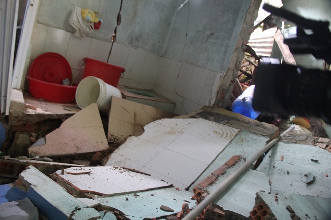 | Căn nhà của gia đình ông Trần Văn Sơn bị sập |