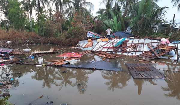 Dãy nhà bị giông lốc cuốn tốc mái.