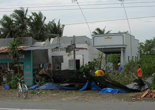 | Trên 100 căn nhà ở thị xã Vĩnh Châu (Sóc Trăng) bị lốc xoáy đánh sập và tốc mái (ảnh Internet) |