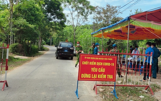 | Lực lượng Công an tham gia chốt kiểm soát dịch COVID-19 trên địa bàn huyện Tiên Phước, tỉnh Quảng Nam. |