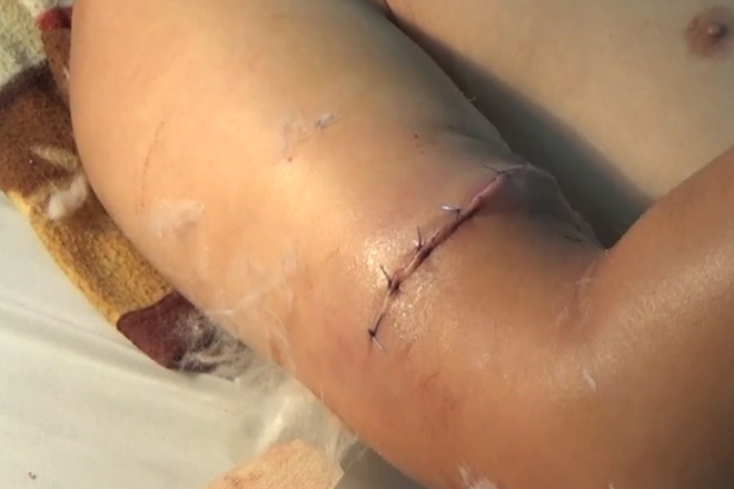 Cánh tay phải của anh Nhân sau khi được các BS nối lại.