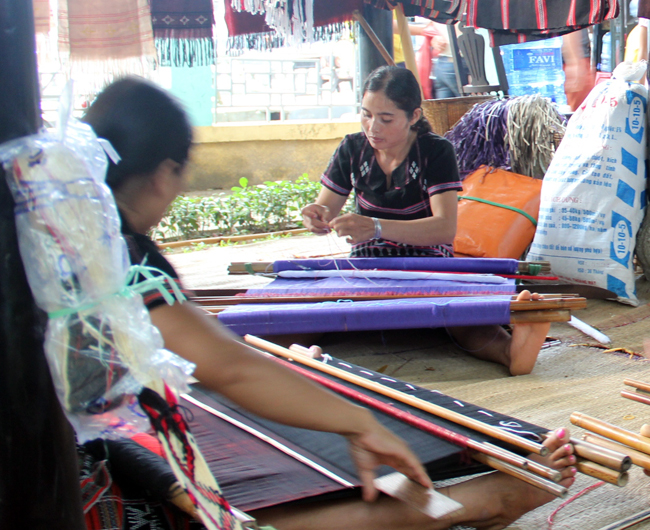 | Cam kết không sinh con thứ 3, nhiều phụ nữ xã A Roàng chú tâm phát triển nghề dệt zèng truyền thống. |