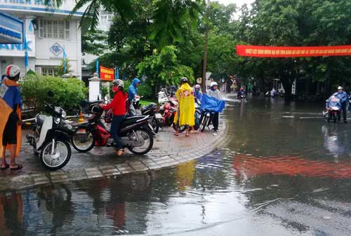 Tại TP Huế, mưa lớn kèm theo hệ thống thoát nước yếu đã khiến nhiều tuyến đường bị ngập nặng, có nơi bị ngập úng cục bộ từ 0,5 đến 0,7m.