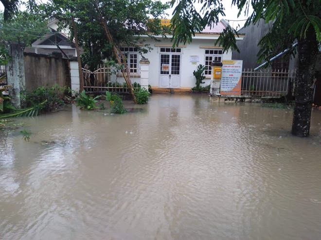 | Nhiều nhà dân chìm trong biển nước |