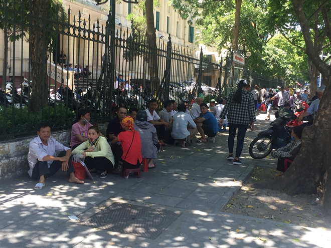 Có mặt ở Bệnh viện K Trung ương (phố Quán Sứ, Hà Nội) là cảnh bệnh nhân và người nhà ngồi la liệt từ phía ngoài đường vào tới trong. Ở hành lang Khoa Nội 2 người ngồi chật kín, không khí ngột ngạt nóng bức, bệnh nhân nhễ nhại mồ hôi. Trong phòng người bệnh truyền hóa chất nóng quá thi nhau quạt tay. Ở tầng 1, bất kể chỗ nào có bóng râm là có người ngồi. Những chỗ có quạt cũng không đủ mát khi cái nóng hầm hập ập vào.