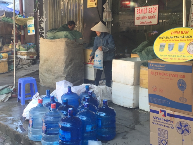 | Mỗi ngày vài tạ đá bán ở cổng chợ Bưởi mà vẫn không đủ cung cấp cho khách |