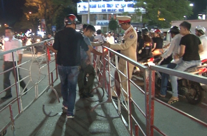 Chiều 15-12, trên các tuyến đường chính ở trung tâm TP Huế có nguy cơ ùn tắc giao thông như ngã tư Hùng Vương- Nguyễn Thị Minh Khai; ngã tư Trần Cao Vân- Bến Nghé; ngã ba Tôn Đức Thắng- Lê Quý Đôn; Lê Hồng Phong- Đống Đa… đều được lực lượng CSGT Công an TP Huế bố trí rào chắn, chuẩn bị phân làn đường khi tắc đường. Các CSGT sẽ không để xảy ra ùn tắc và sẽ xử lý nghiêm các đối tượng quá khích lợi dụng đua xe trái phép.