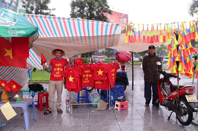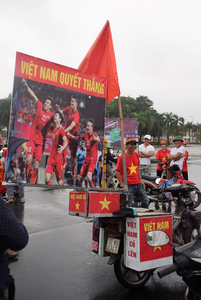 Chiếc xe bán hàng cũng trang trí hình ảnh đội tuyển Việt Nam như tiếp thêm sức mạnh