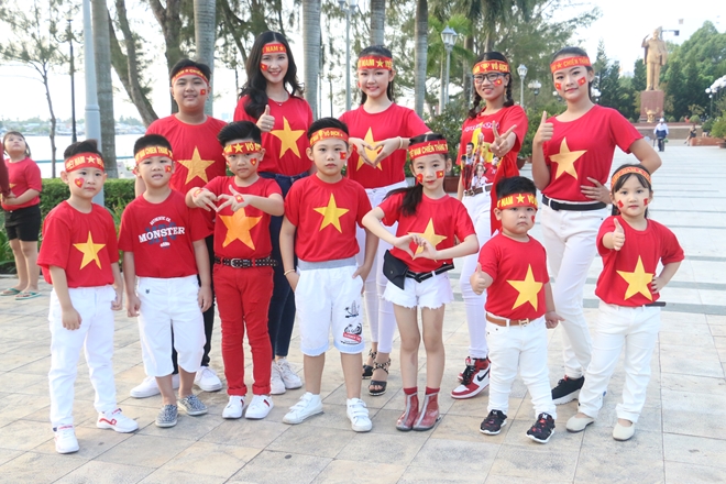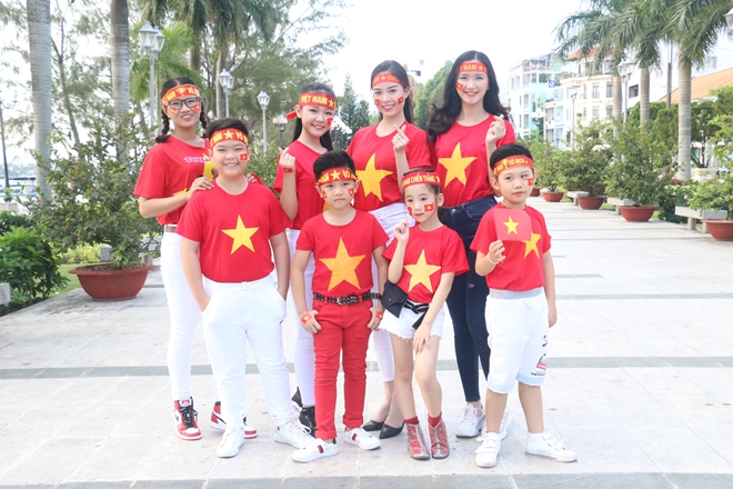 Các bạn nữ tại TP Cần Thơ dễ thương tham gia cổ vũ cho đội tuyển Việt Nam.