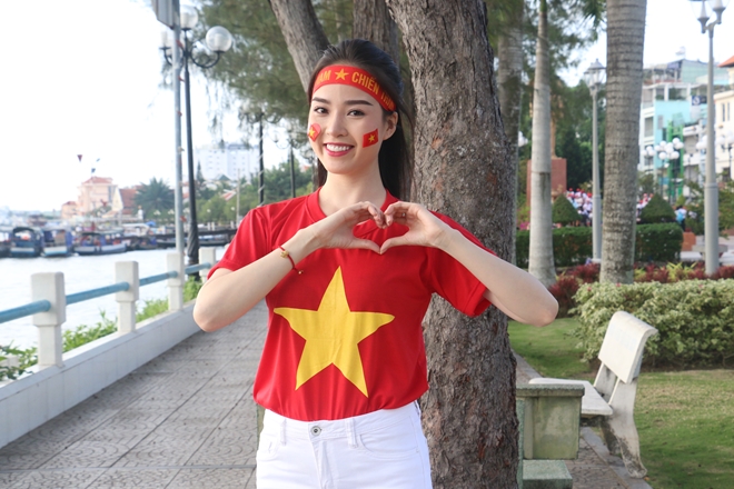 Bạn Vũ Thanh Tú - Hoa khôi HSSV thanh lịch TP Cần Thơ năm 2016, cho biết, những ngày qua, cô và bạn bè luôn dành tình yêu và sự hâm mộ cho Đội tuyển Việt Nam. Mong rằng trận đấu tối đêm nay, sẽ mang về niềm vui, vinh quang cho mọi người trên đất nước. "Cố lên Đội tuyển Việt Nam! Cố lên các chàng trai!" - Thanh Tú, gửi lời cổ vũ.