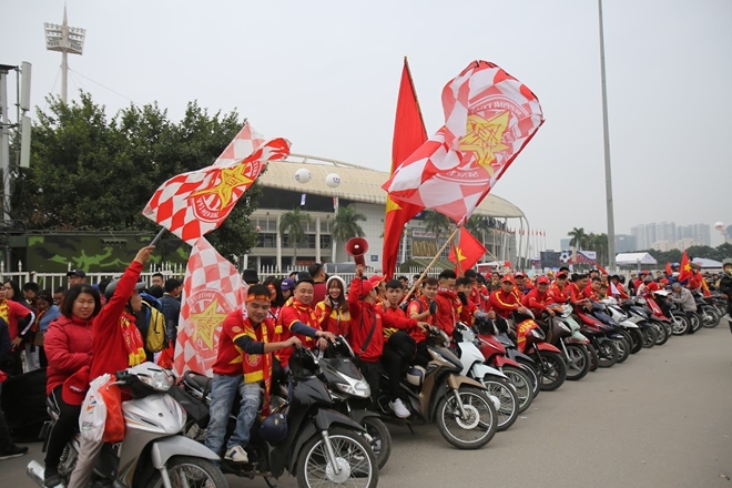 Chiều 15-12, còn hơn 4 giờ mới diễn ra trận đấu chung kết lượt về AFF Suzuki Cup 2018 giữa hai đội tuyển bóng đá Việt Nam và Malaysia, hàng ngàn cổ động viên đổ về khu vực bên ngoài sân vận động quốc gia Mỹ Đình (Hà Nội) để cổ vũ cho đội tuyển Việt Nam.