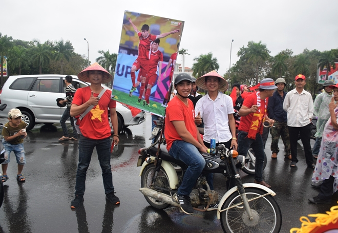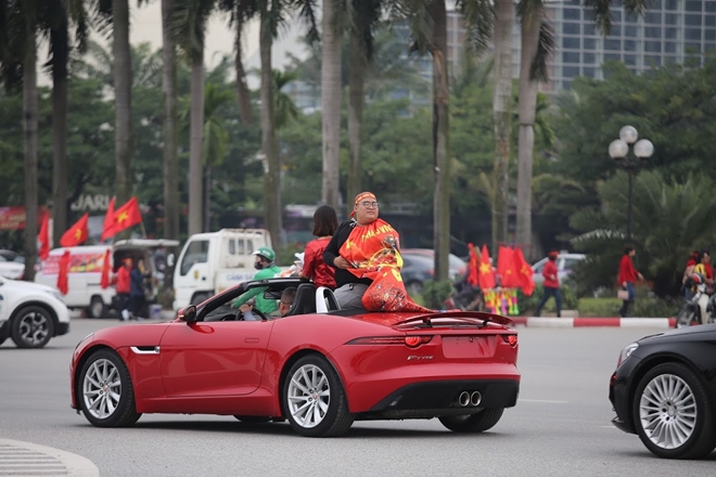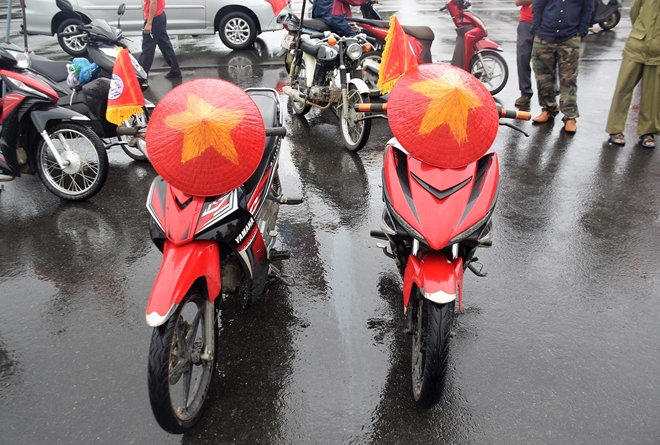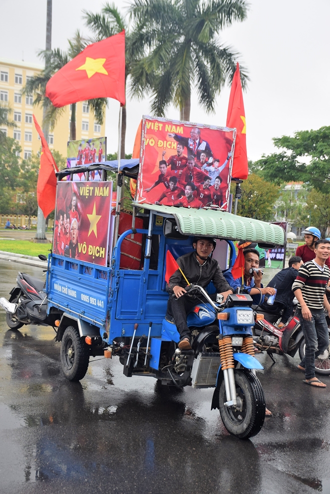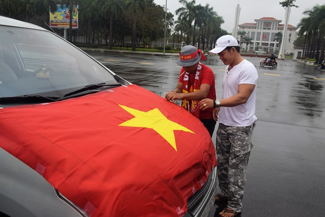 Tại nhiều tuyến phố, không khí cũng đang “nóng” dần lên khi nhiều phương tiện xe ô tô, xe máy được các cổ động viên trang trí bắt mắt chuẩn bị cho cuộc đi “bão” trong đêm.