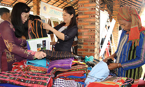 | Các đại biểu dự hội thảo tham quan, mua sắm các sản phẩm du lịch của tỉnh Bình Phước. |