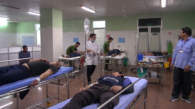 Số ngư dân bị ngộ độc được các y, bác sĩ Bệnh viện đa khoa Đặng Thùy Trâm tập trung cứu chữa và chuyển lên Bệnh viện đa khoa Quảng Ngãi tiếp tục chữa trị.