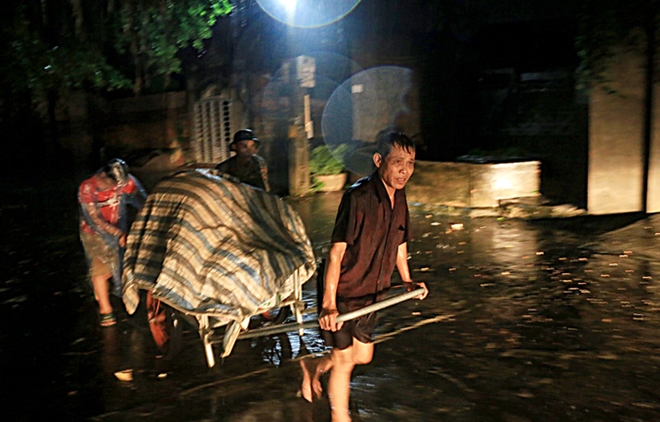 | Người dân ngoại thành Hà Nội trắng đêm dầm mưa chạy lũ. |