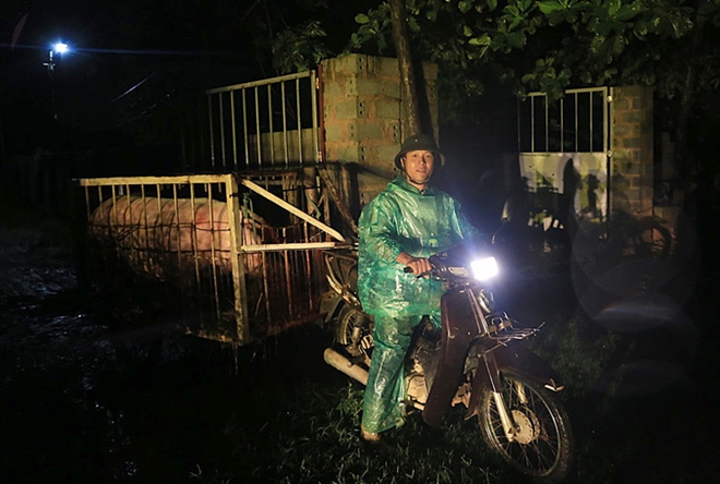 Nhà anh Nguyễn Văn Nệ (thôn Nhân Lý, Nam Phương Tiến) có 30 lợn giống và 140 lợn con được di chuyển gấp lên vị trí cao hơn. Năm trước, khu vực này nước lũ đã ngập hơn một mét.