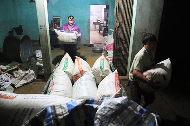 | “Nhà tôi ở vùng trũng nên phải di chuyển gạo lên chỗ cao. Từ chiều đến giờ tôi đã chuyển được hơn một tấn gạo”, anh Nguyễn Duy Đông nói. |