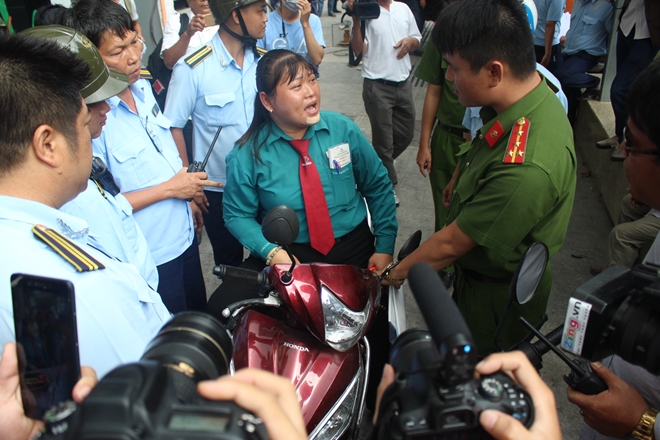 Cũng tại đây, phát hiện một nữ nhân viên của công ty taxi Vinasun đang chạy xe máy trên vỉa hè, đoàn kiểm tra cũng đã lập biên bản xử lý, nhưng nữ nhân viên cố tình tìm cách chống đối không cho lực lượng chức năng làm nhiệm vụ, buộc lực lượng chức năng phải dùng biện pháp cưỡng chế mới xử lý được.