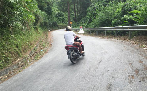 Tắt máy xe ga, tự ý thả trôi khi đổ đường đèo dốc tiềm ẩn nguy cơ tai nạn giao thông. |