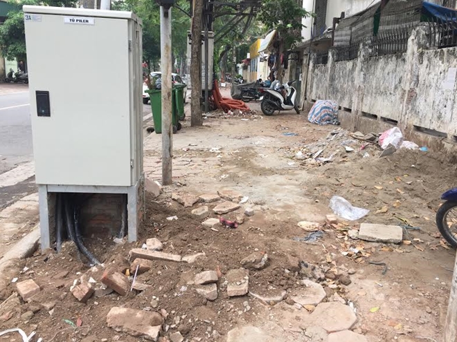 | …bởi phế thải từ bê tông, đá vụn dồn đống ngay trên vỉa hè gây khó khăn cho người đi bộ. |