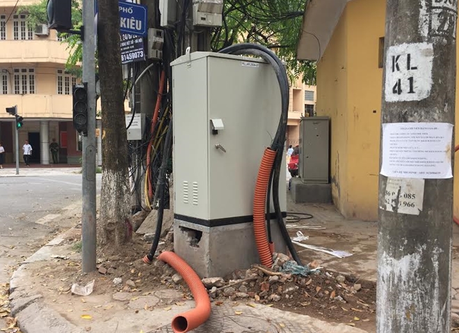 | Các ống dẫn dây điện, cáp nằm giữa lối đi rất mất mĩ quan |