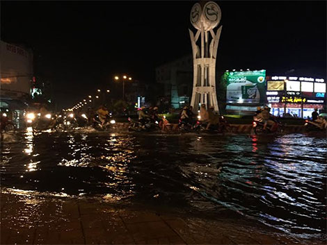 Khoảng 18h tối nay, 18/10, cơn mưa lớn kéo dài hơn 1 giờ đồng hồ đã làm nhiều tuyến phố trong nội ô TP Cần Thơ bị ngập nặng. Do vào giờ cao điểm, các phương tiện di chuyển khó khăn.