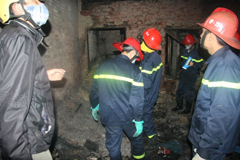| Lực lượng chức năng khám nghiệm hiện trường vụ hỏa hoạn. |