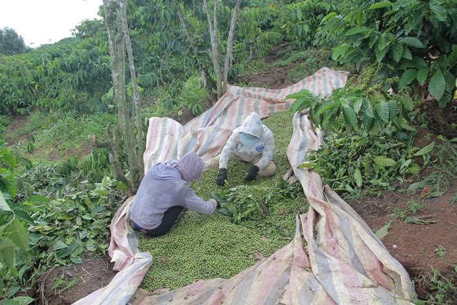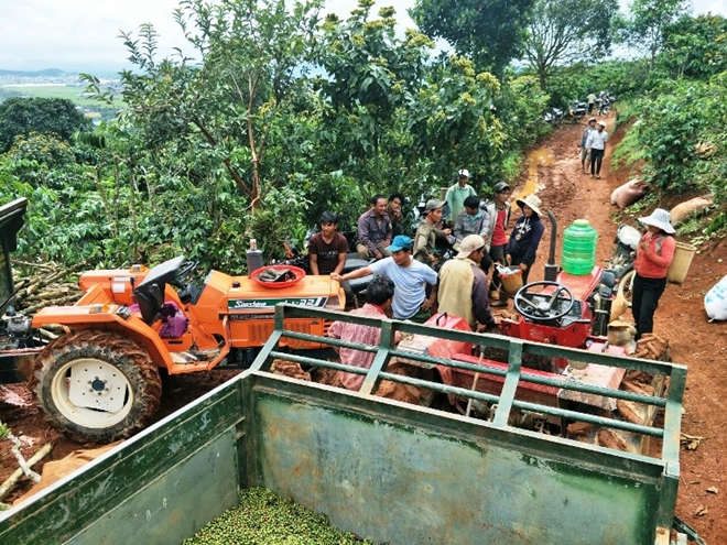 Hiện người dân trong vùng bị ảnh hưởng đang phải hỗ trợ nhau thu hoạch cà phê non để vớt vát lại những gì có thể trước khi toàn bộ hoa màu bị nhấn chìm xuống lòng đất.