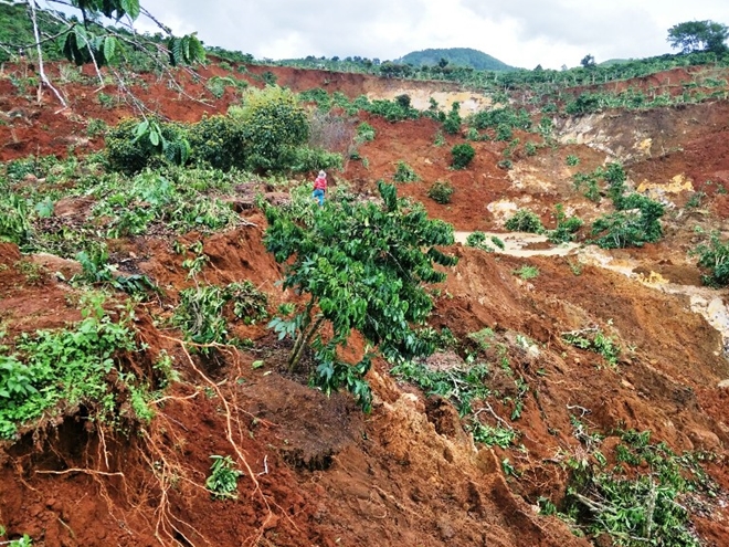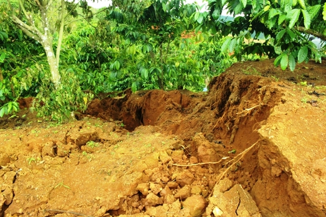 | Người dân thu hoạch cà phê non tháo chạy khỏi khu vực nứt trượt đất |