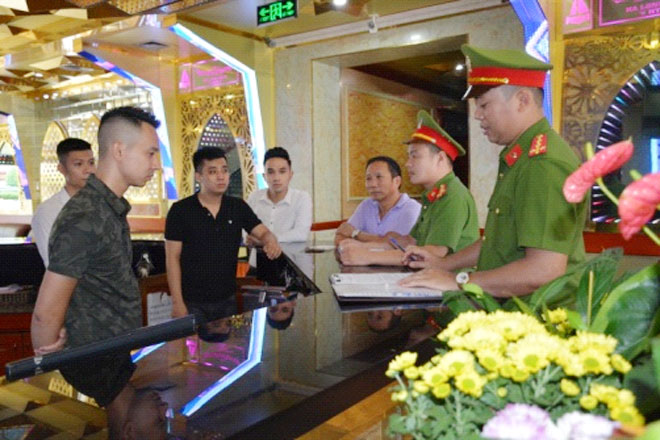 Công an tỉnh Quảng Ninh tuyên truyền tại cơ sở kinh doanh karaoke trên địa bàn TP Hạ Long.