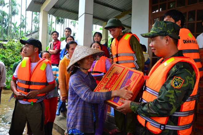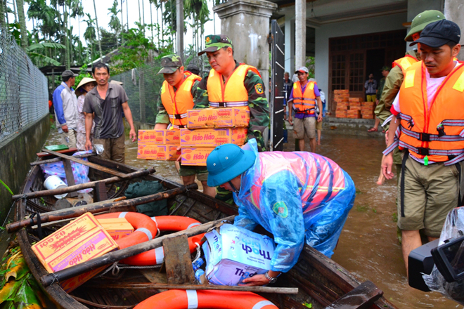 | Sáng ngày 8-12, Bộ chỉ huy quân sự tỉnh Quảng Ngãi tổ chức đưa 400 thùng mì tôm tiếp tế cho 400 hộ dân vùng bị cô lập ở xã Nghĩa Phương và Nghĩa Điền huyện Tư Nghĩa. |