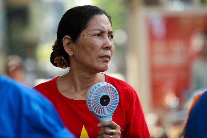 Gương mặt lo âu của các bậc phụ huynh chờ con trước điểm thi trong không khí hầm hầm 37 độ C.