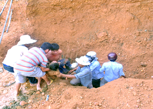 Trong lúc dọn dẹp đồ đạc để chuẩn bị đổ bê tông móng xây nhà thì bất ngờ tảng đất lớn đổ sập xuống vùi lấp 3 người trong một gia đình. Vụ tai nạn khiến 1 người tử vong, 2 người khác bị thương.