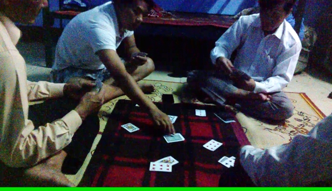 | Hình ảnh từ clip cho thấy cán bộ xã Thủy Phù đánh bài ăn tiền (Ảnh cắt từ Clip). |