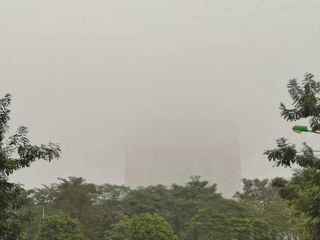 | Nhiều tòa nhà chìm hẳn trong làn sương mù. |