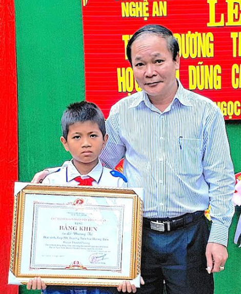 Trước hành động dũng cảm của Tú, UBND huyện Thanh Chương, Sở GD&ĐT Nghệ An đã tổ chức lễ tuyến dương và trao tặng bằng khen của chủ tịch UBND tỉnh Nghệ An cho em Lô Dương Tú.