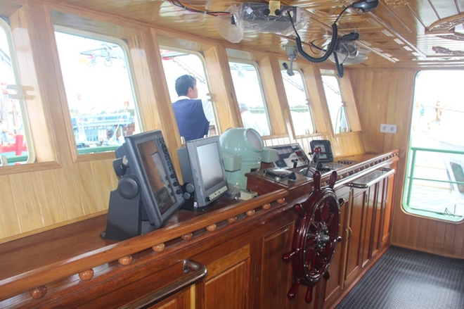 | Nhiều trang thiết bị hiện đại được lắp đặt tại buồng lái tàu cá vỏ thép. |