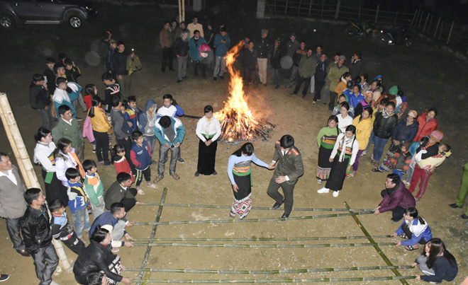 Rời khỏi điệu khặp cạnh bếp lửa trại, vừa lấy tay quệt mồ hôi, Trung tá Trần Ngọc Sơn cho biết: “Tết là dịp mà bà con sinh sống trong các bản làng thể hiện tình cảm làng xóm, láng giềng của mình và đây cũng là thời điểm những trò chơi dân gian, những hoạt động văn hóa, văn nghệ được tái hiện ở khắp nơi, trong nhiều ngày. Để tạo điều kiện cho bà con đón Tết, vui Xuân trong yên bình, ngay từ ngày 5-2 (tức 20 tháng Chạp), Công an huyện đã triển khai kế hoạch đảm bảo ANTT trên địa bàn.