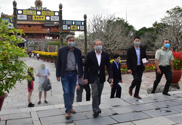 Chủ tịch UBND tỉnh Thừa Thiên Huế cùng các cơ quan chức năng kiểm tra công tác phòng, chống dịch tại các điểm di tích. |