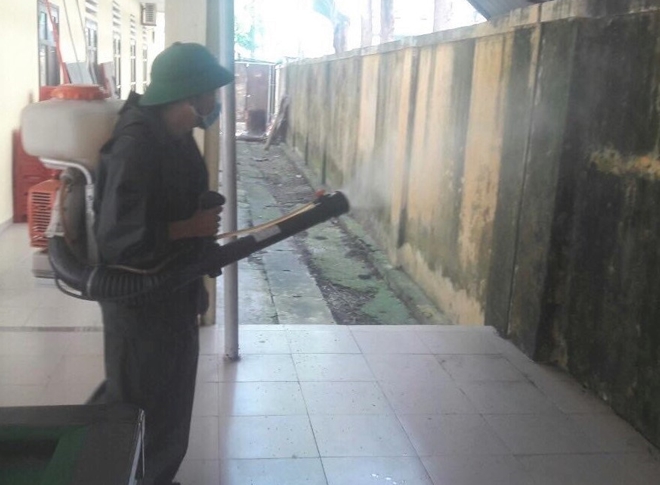 Lực lượng quân y Bộ CHQS tỉnh Thừa Thiên Huế phun thuốc phòng dịch bệnh do virus Corona tại doanh trại đơn vị. |