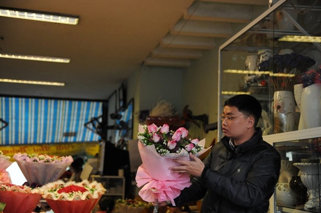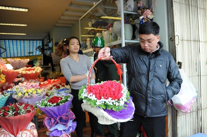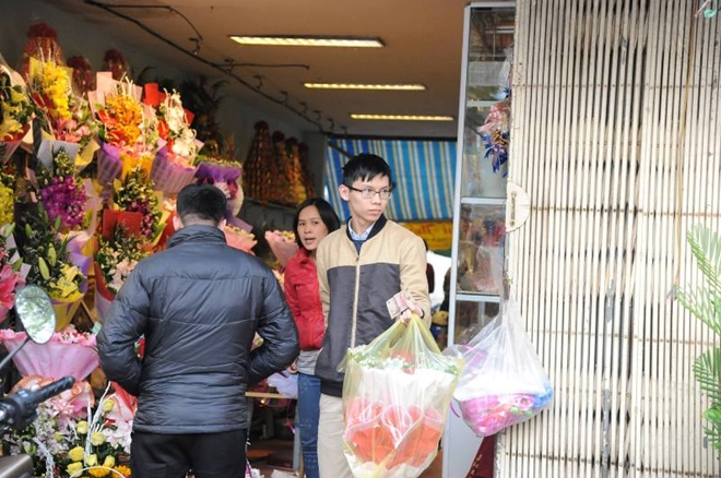 Từ sáng sớm các cửa hàng bán hoa đã có rất đông người đến mua hoa tặng người mình yêu trong ngày lễ Valentine.