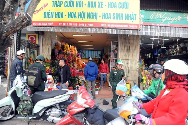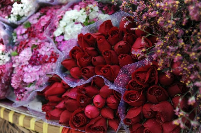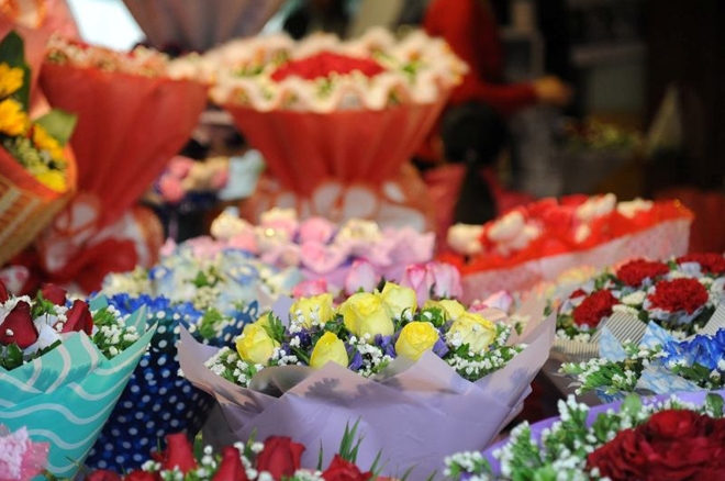 | Nhiều điểm bán hoa trên thành phố cũng là tâm điểm chú ý của ngày lễ Valentine. |