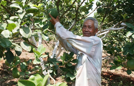 | Các hộ dân trồng bưởi ở huyện Tân Thành có nguy cơ thất bát vì thời tiết không thuận. |