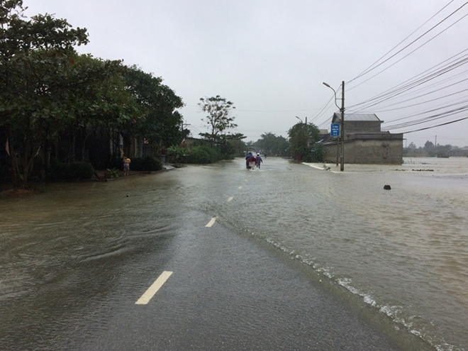 Tại huyện Phú Vang, tỉnh lộ 10A, 10C và tỉnh lộ 2 có một số đoạn ngập từ 0,3-0,5m, dài khoảng 4km. Trước đó, chiều 13-12, tuyến quốc lộ 1A từ Km 866+200 đến Km 867 đoạn qua xã Lộc Trì (huyện Phú Lộc) cũng bị ngập sâu 0,3m gây ách tắc giao thông.