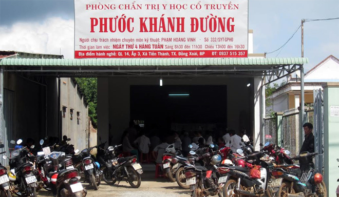 Ngày 10-11, tin từ Đội quản lý thị trường số 6, thị xã Đồng Xoài, tỉnh Bình Phước cho biết, cơ quan này vừa tiến hành kiểm tra đột xuất với Phòng chẩn trị y học cổ truyền Phước Khánh Đường (địa chỉ: Quốc lộ 14, ấp 3, xã Tiến Thành, thị xã Đồng Xoài) do ông Phạm Hoàng Vinh, 26 tuổi, làm chủ. Tại đây, đoàn đã phát hiện nhiều sai phạm liên quan đến việc kinh doanh sản phẩm thuốc, dược liệu.