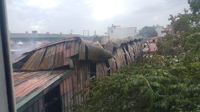 Dãy nhà kiot vải, quần áo, giày dép bị thiêu rụi hoàn toàn |