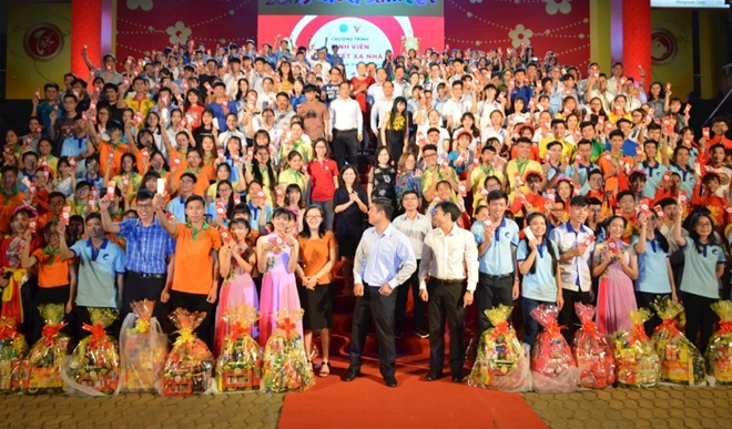 300 bạn sinh viên đến từ 25 trường đại học, cao đẳng và trung cấp chuyên nghiệp trên địa bàn TP Hồ Chí Minh không có điều kiện về quê đón Tết đã được trao tặng những phần quà ý nghĩa.